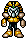 Pharaoh Man is a humanoid robot based on an Egyptian pharaoh, hence his name. He has red eyes, a helmet that resembles Tutankhamun, a white mouth cover, a yellow armor, white pauldrons, his left arm has a white bracer and a white hand, a buster on his right arm, yellow leg armor (with a white decorative part on top of it) on each leg and white feet.