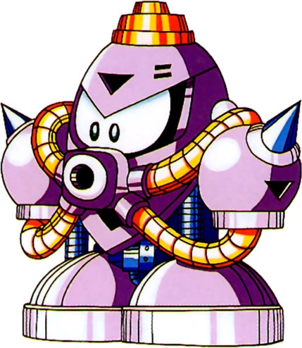 Power Slam (パワースラム Pawā Suramu) is a new "hopping" giant in Mega Man 6 that was created from spare parts Dr. Wily happened to have on hand. It lifts off from where it is, and as soon as it reaches the top of the screen, or the ceiling (if it is an enclosed area), it stomps down. Beat can defeat it with one hit, but if the player did not obtain him, Flame Blast can destroy it with ease. It appears in Plant Man's, Tomahawk Man's and Wind Man's stages.