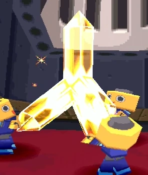 The Golden Refractor (黄金のディフレクター) is a legendary Refractor used to power the Colossus in The Misadventures of Tron Bonne. After its defeat, the Servbots took it to the Gesellschaft and commemorate, but the favorite Servbot threw it in the trash by accident while cleaning the Storage Room.