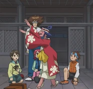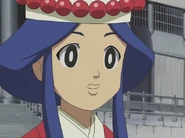 Ran appears stopping WindMan from attacking Rockman, Roll and IceMan after they're blown far away in the cyberworld after Netto Hikari uses a Toppuu chip bearing WindMan's emblem on it, telling him they should hear the trio out before marking them as enemies. She introduces herself to the Navis as the priestess of the temple on Shīsā Island. Netto and his friends arrive on Shīsā Island shortly after where Ran meets them and introduces herself. Netto shows her the Toppuu chip with WindMan's emblem and she explains the chip contains the sealed power of the Wind God which disappeared from their temple years ago, which is revealed to have been stolen by Yamitaro Higure. She drives them to the temple where she states the temple is where the island's guardian deity lives, and that they cyberworld has a special barrier isolating it from the rest of the world. She states she knew Netto and his friends were coming due to the Wind God's guidance. She explains how the island came to be and that the god Shīsā protects them. WindMan informs her viruses have intruded in the cyberworld and she and the others go to stop them. She goes into the inner sanctuary of the temple where she encounters Yuriko Ozono, who has stolen the Shīsā statue. Yuriko kicks a jar of sake at her, knocking her out and intoxicating her. Ran wakes up in a drunken stupor and reveals that even when she's drunk she is an excellent operator. She and the others return the Shīsā statue to the temple, calming the storm that had formed due to its absence, and sobers up. Ran and the others watch as the weather clears, and celebrate. Flying to Shīsā Island