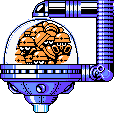 Eddie: In the transition room just before going outside to the sunset. The only thing in this room is Eddie, who will randomly provide a big health energy, a big weapon energy, a 1-UP, or an E-Tank. If the player doesn't like what they get and doesn't take it, they can re-enter the room to have Eddie provide the player another valuable pickup.