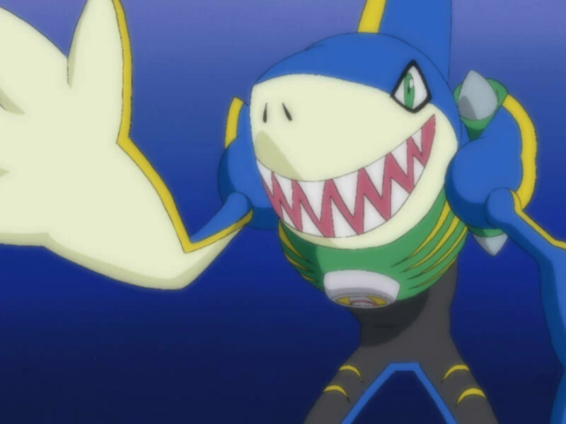 Maysa is testing Lan and his friends on fish facts when they are besieged by the robotic fish. Maysa defeats an attacking fish with his knife while Yai and Lan sends in Glide and MegaMan to investigate. They are harassed by SharkMan who knocks MegaMan in to the water. World Three spots MegaMan on their monitors and order the Jelly to attack him. Glide asks Lan to help MegaMan, but the NetOps are being chased by robot fish.