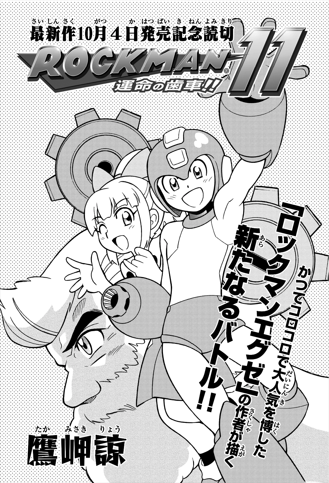 Rockman 11: Unmei no Haguruma!! (ロックマン11 運命の歯車!!) is a Japanese 26-page one-shot manga drawn by Ryo Takamisaki and published in CoroCoro Aniki on September 2018.[1]