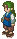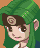 Sal is a girl with long thick green hair that she styles into a hime cut, and green eyes. She wears a blue dress with white sleeves, and brown pants. Along with a brown headband bearing WoodMan's emblem, and brown shoes.