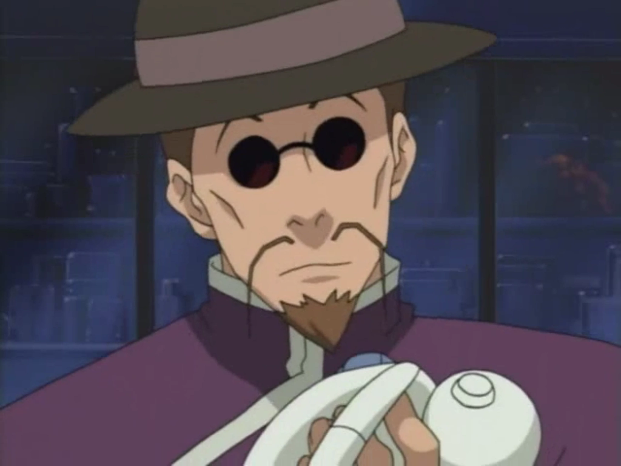 The shady salesman, also known as "strange old man" (変な親父 henna oyaji) and shopkeeper (店主 tenshu), is a recurring character in the MegaMan NT Warrior anime series. As his name implies, he is a devious salesman who often sells poor quality or shady products to unsuspecting customers. He seems to own multiple businesses, or moves to different locations to avoid being caught.