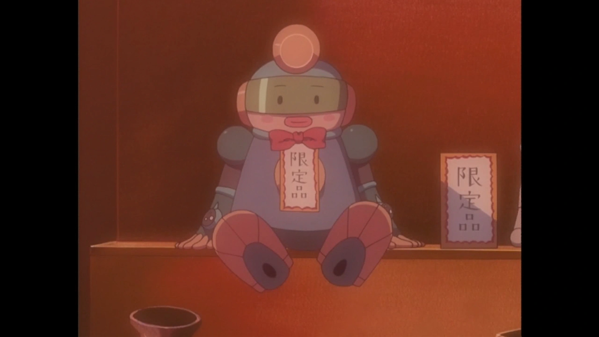 In Beast+, the shady salesman appears to own a shop in Densan City. When Madoi finds BubbleMan's Miniroid in the basket she bought, she tosses it away and the salesman picks it up and puts it on display. At the end of the episode after Meiru kicks BubbleMan away, the shady salesman finds him and puts him on display next to the Miniroid. I Want Limited Goods Puku