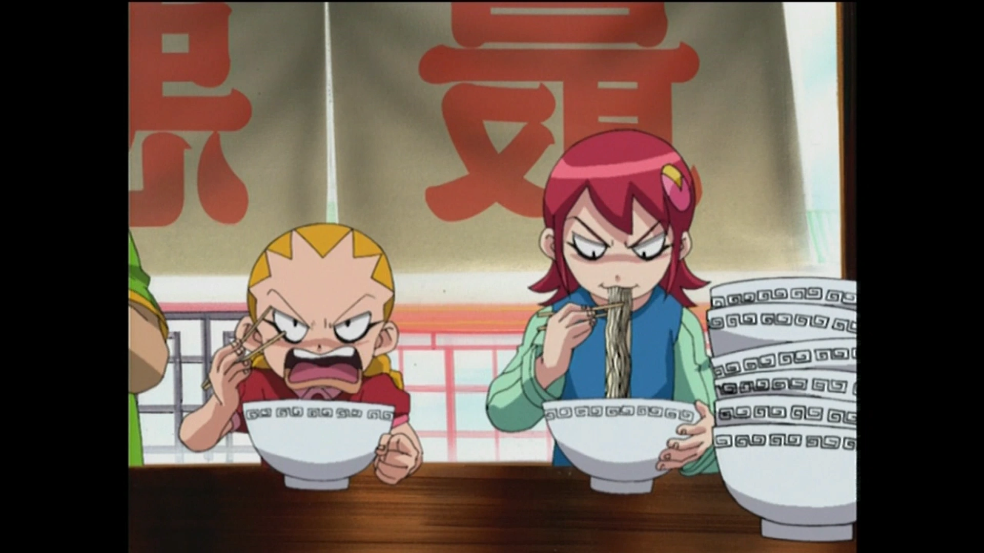 Yai and Maylu eating his awful ramen.