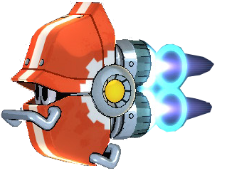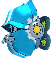 Shield Attacker M is an underwater variant of the Shield Attacker from Mega Man 11, seen only in Acid Man's stage. These enemies were given a special coat of paint over their body, allowing them to function in the chemical tanks of Acid Man's lab without suffering any damage. Scrap enemies sometimes take on the form of derelict Shield Attacker M's.