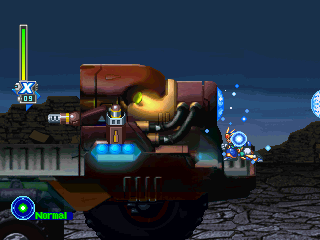 When fighting against a Shishimaru Dump, a small laser turret will slide up and down on the back of the cabin shooting every 3 seconds if X or Zero are in the line of fire of the turret. They have the option to destroy it. The truck will fire a missile every 3 seconds which will land in the position that X or Zero were standing when the missile was launched. These missiles can be destroyed. The front of the cabin has a small platform in which they can step on. The cabin will shoot a laser from its core every 2 seconds, which can be avoided by just crouching. The core must be destroyed in order to beat the sub boss. Once the core is destroyed, X or Zero will have a small time limit in which they have to reach a safe area before the whole truck explodes. Along the level, there are another two sub bosses that need to be destroyed in order to progress throughout the level.