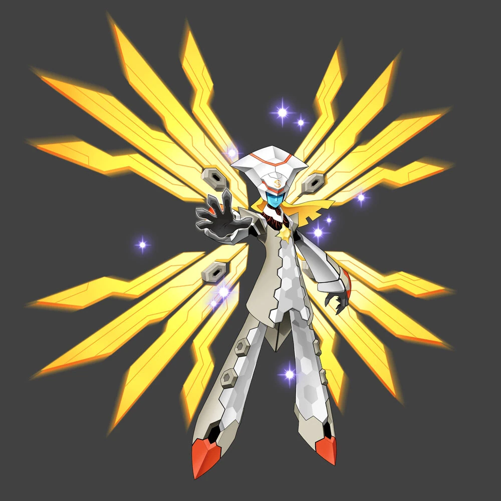 - Omega Wave (オメガウェーブ) - Sirius launches his wings, which then shuffle about the field, firing lasers in random formations, covering different portions of the player's row. Each laser follows an element - Fire/Aqua/Elec/Wood - and it is possible for one row to be attacked by more than 1 laser at once.