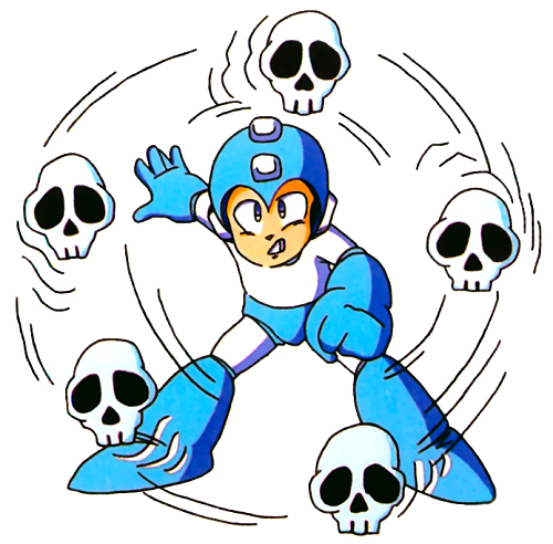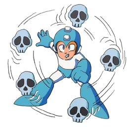 - Even though the artwork of the Skull Barrier shows Mega Man as white and light blue while using the weapon, his torso and limbs are cyan in-game.