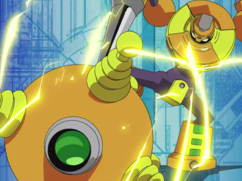 SparkMan using Thunder Ball against MegaMan and WoodMan, episode 39.