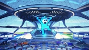 Street Fighter V: Champion Edition DLC stage Ring of Arcade has a giant Mega Man decoration and a Servbot walking around. |