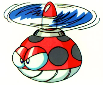 Taketento (タケテントウ Taketentou) is a ladybug-like patrol robot enemy that is made for indoor use. They fly straight at first, but when they get close, they lose their propellers and fly toward Mega Man in an erratic pattern. In Mega Man 4 they appear in Dust Man's stage, Drill Man's stage, Pharaoh Man's stage, and in the second Wily Castle stage. They also appear in Pharaoh Man's stage in Mega Man IV and in the second episode from Super Adventure Rockman.
