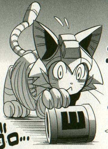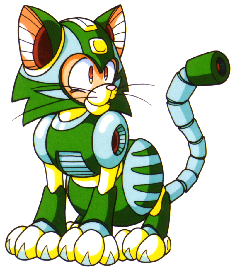 Originally created as a pet robot, Tango was modified to be able to assist Mega Man in combat situations. With a build based on that of a cat, Tango enjoys a high level of agility—but because of those same feline design elements, he also has a powerful wanderlust, which means he will wander off without warning for days at a time. So far, Tango has always returned home on his own eventually.