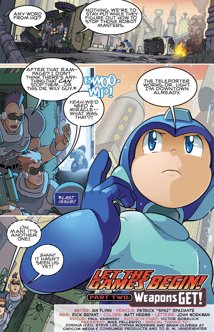 - ↑ "Sorry! Teleportation works fine on people. Doctor Light perfected that years ago. But I guess you're not like most..." - Mega Man, Mega Man #25