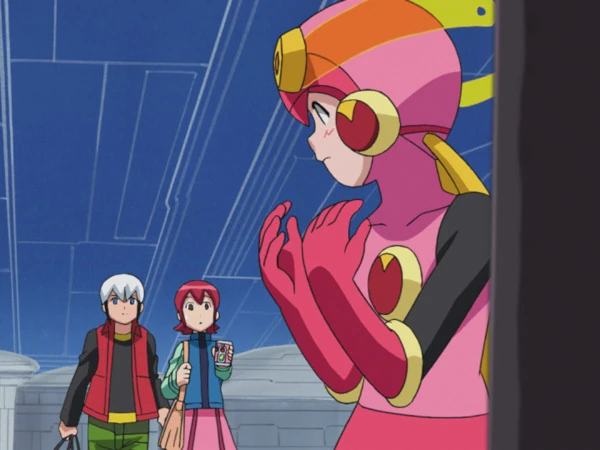 Enzan Ijuin and Meiru Sakurai continue walking through the post-apocalyptic world of Beyondard hoping to reunite with their friends. The two of them have been traveling for some time but had yet to see a single living person. Eventually, they found a railway track that seem to be in use and decides to follow it hoping to find a settlement or such. Nearby, they notice a group of viruses attacking a train station and at the same time, a train is approaching their way. Meiru attempts to plug Roll into a nearby signal to stop the train but as she does so, Roll materialized instead. Realizing that Beyondard is a world where NetNavis and humans coexist, Enzan does the same for Blues and the two Navis defeat the viruses before the train arrive. Once the viruses are dealt with, the train stopped and the engineer pick up the two of them.