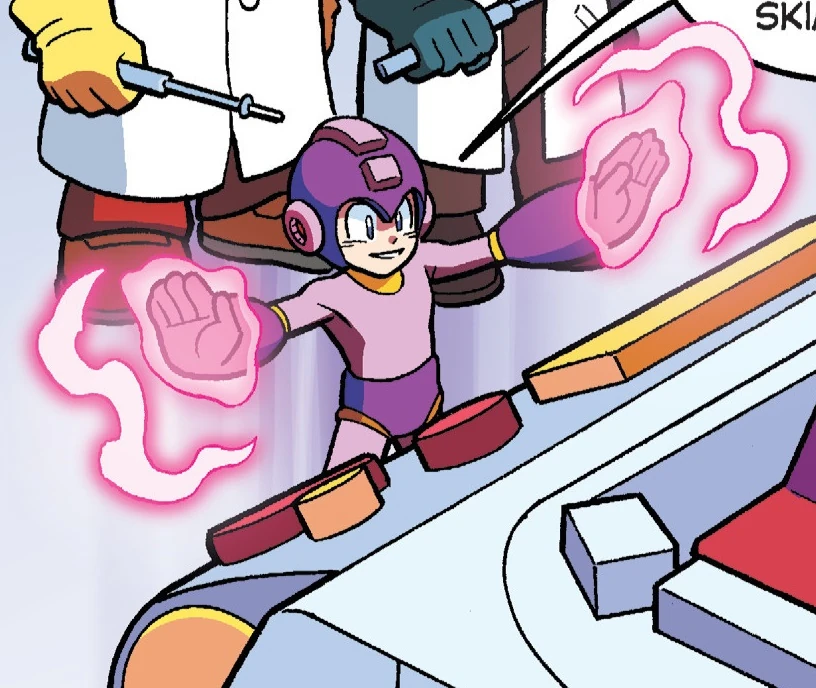 Time Man is seen using his Time Slow for the first time to free Dr. Wily from the police in issue 5, and later to recapture Dr. Light's Robot Masters. After his defeat and repair, Time Man uses his power for good deeds instead, like helping the Robot Masters in issue 12 by slowing enemies and their projectiles, and slowing down a patient during a surgery in issue 31. Sonic Man was immune to both Time Slow and Flash Man's Time Stopper. In issue 55, Mega Man used Time Slow in conjunction with Time Man to help ease the work of the doctors working on the Time Skimmer.