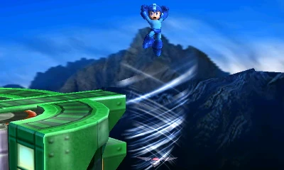 Mega Man drops a fan on the ground that creates a tornado, which helps him slowly rise to the air. Opponents caught in the tornado will be damaged inside it and then pushed (much like in Mega Man 8), taking 1-2% damage, up for a total of 6. It can be used mid-air as recovery, and it doesn't leave Mega Man helpless upon using it. However, it has slightly more startup time in exchange for more horizontal recovery. The fan will drop to the ground while pushing Mega Man up if used mid-air.