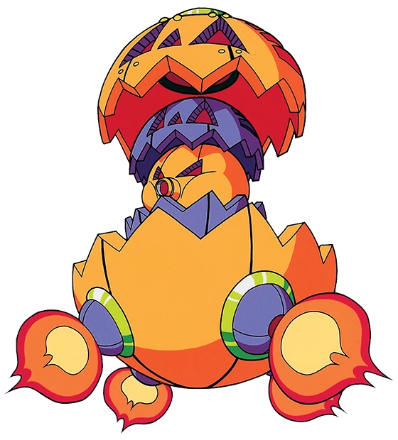 VAN Pookin (VAN・プーキン VAN Pūkin) is the sub boss of Shade Man's stage in Mega Man 7, and a boss in Mega Man: The Power Battle. It is three separate jack-o'-lantern robots, one inside each other. It jumps around, trying to jump on Mega Man. The mini pumpkin fires green shots, and it can fly into the air and shoot many green shots. It is weak to Thunder Bolt. It can reveal a different path depending on whether it was defeated by shooting either its large eyes, which reveals the right passage, or the mini pumpkin inside it, which reveals the lower passage. The lower passage leads to Proto Man, and the right passage to the Energy Equalizer.