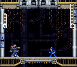 Vile's stage is an abandoned factory he set up to self-destruct and tried to hinder X from escaping by fighting him. If he is defeated with any of his weaknesses (Spinning Blade and Ray Splasher), Vile will not appear in Doppler Stage B (replaced by Volt Kurageil), and X will be able to obtain Zero's saber in the battle against Mosquitus. If X didn't use Vile's weaknesses on him, he will flee the scene and reappear at Doppler Stage B as usual. Regardless of the result, X will need to escape from the factory before it explodes.