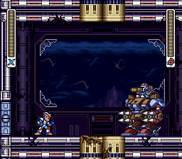 Vile MK-II usually appears as the boss of Doppler Stage B, but he can be fought earlier as an optional secret boss in his own stage, which can be accessed from the stages of Blizzard Buffalo, Crush Crawfish, and Volt Catfish. In both appearances Vile starts with a Ride Armor. In Vile's stage he uses the Ride Armor type DRA-00 (Kangaroo), while in Doppler Stage B he uses the larger Ride Armor Goliath (Brown Bear in Japan).