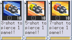 Vulcan 3 shoots 7 times, each hit dealing 10 damage, for a max of 70 damage. In Mega Man Battle Network 6 it shoots 5 times and causes 20 damage per hit for a total of 100 damage.