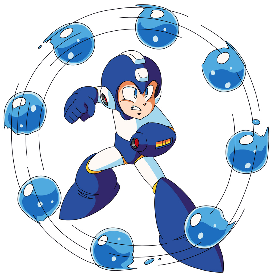 - Mega Man's color scheme when using the Water Shield is almost the same as his default color scheme in-game, only having a slightly brighter shade of light blue. In artwork, his secondary color is white instead.