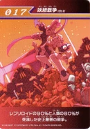 | 017 | 妖精戰爭 | 妖精戦争 | 造成90%思考型機器人以及60%人類死亡的史上最惡戰爭。 | Zero 3 |